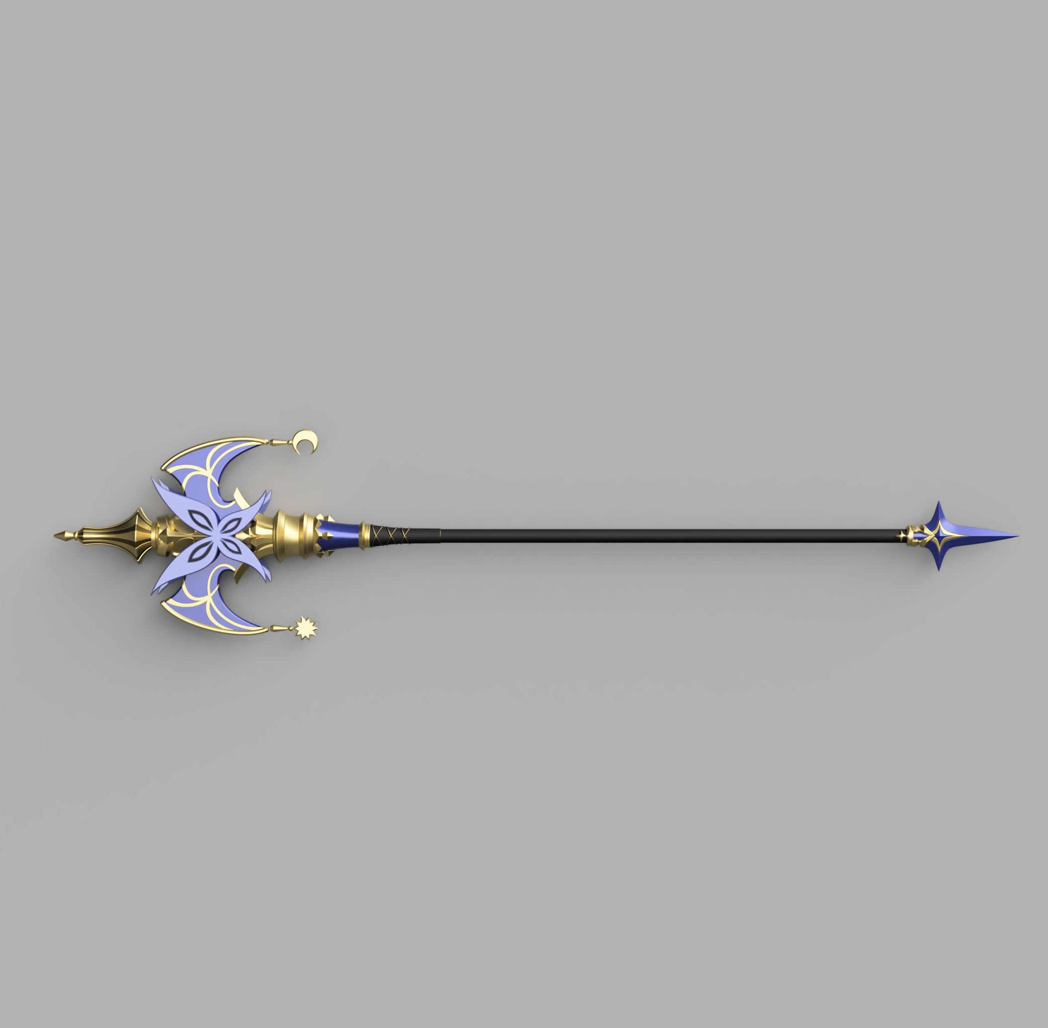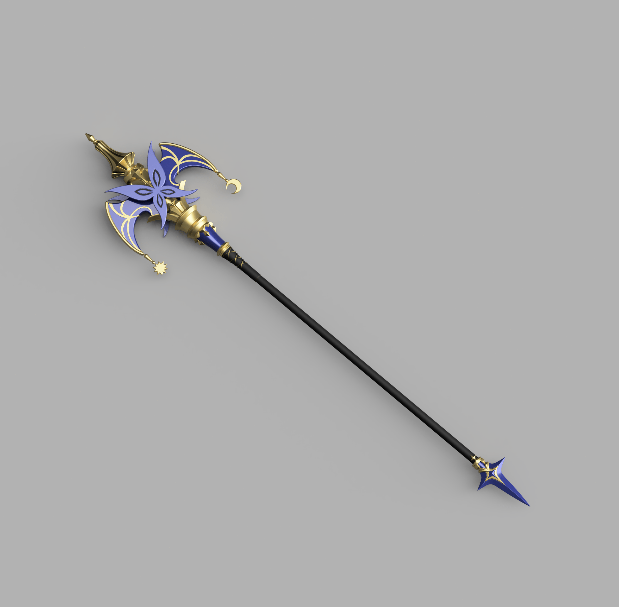 Alternately, if you want a longer handle but have the staff be smaller overall, you can print everything at 79% and cut a 1" wooden dowel to be 63" long; this will get you a 72" staff.