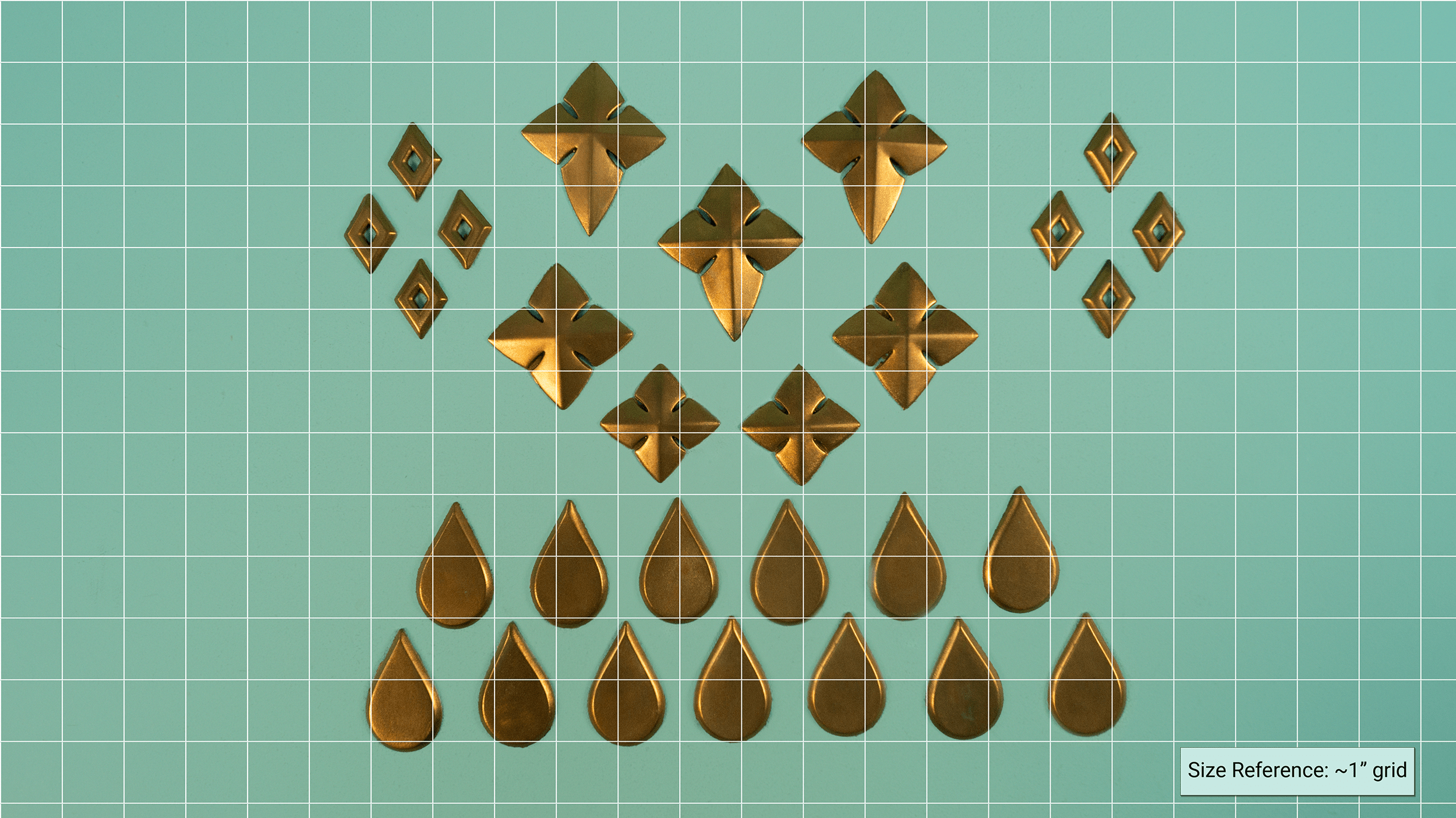 We suggest gluing spade bails to the underside of the teardrops so you can sew them on; a printed ring is never as durable.