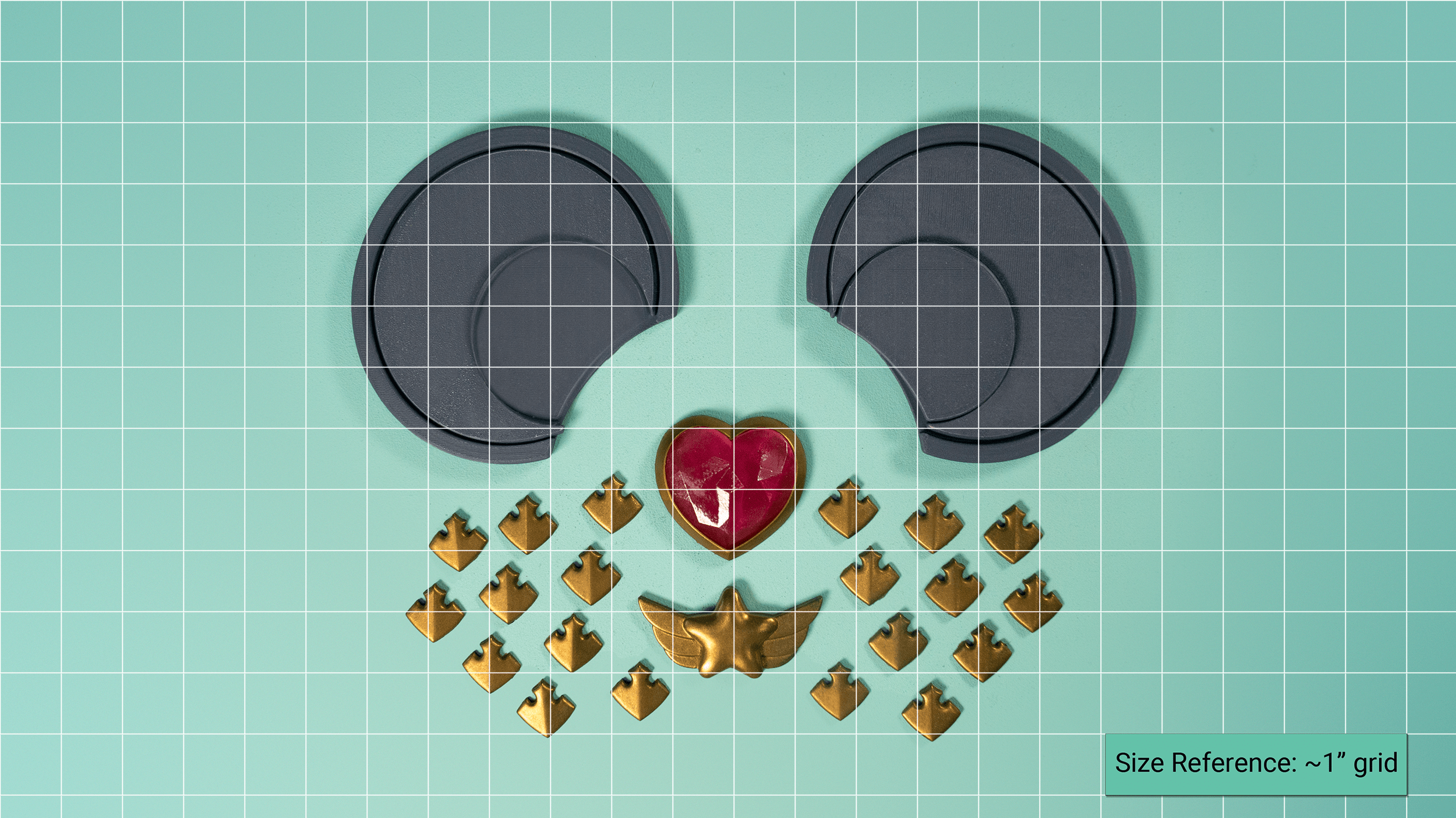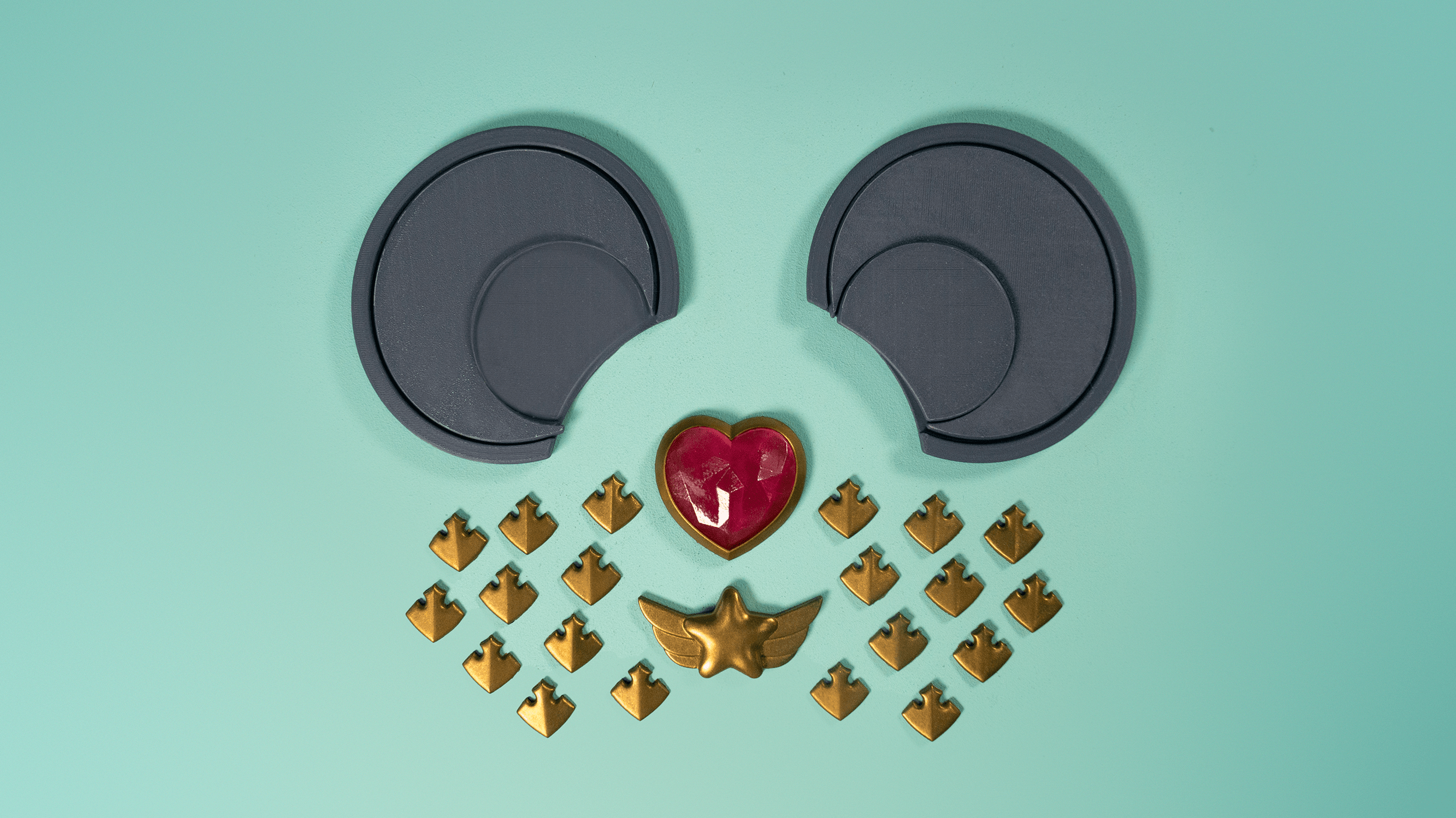 A cast kit for Vikala's accessories from Gran Blue Fantasy. The ears print in separate parts by colours so you can paint before assembling, and the inner parts are hollow to reduce weight.