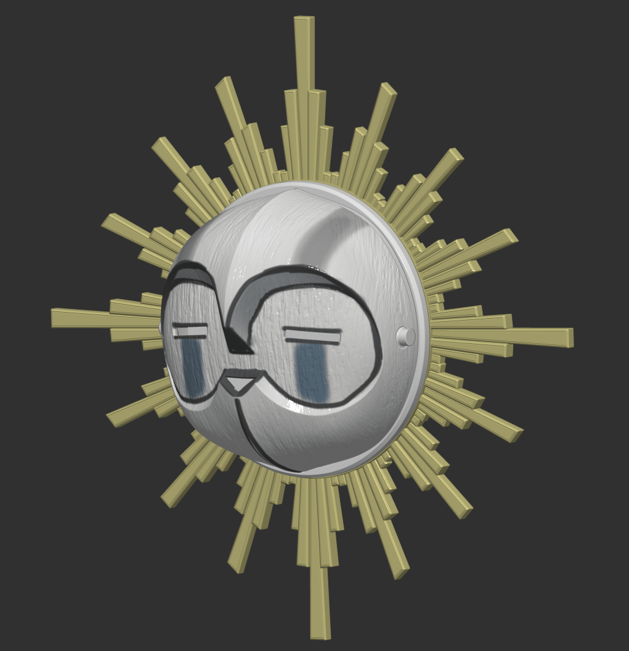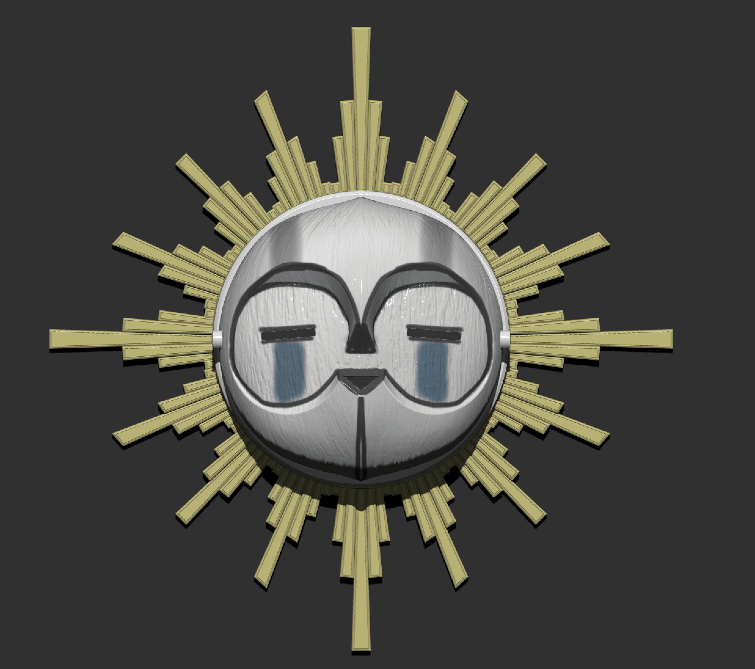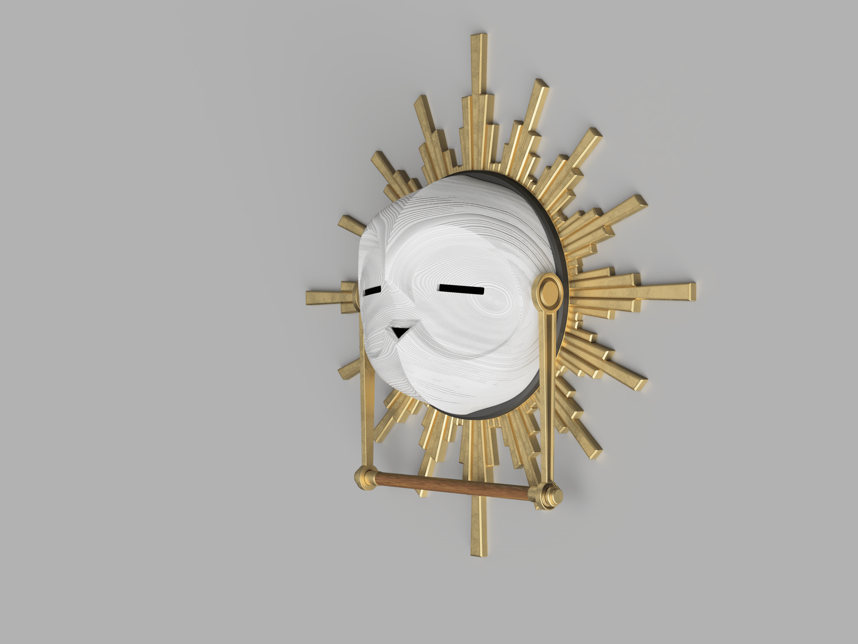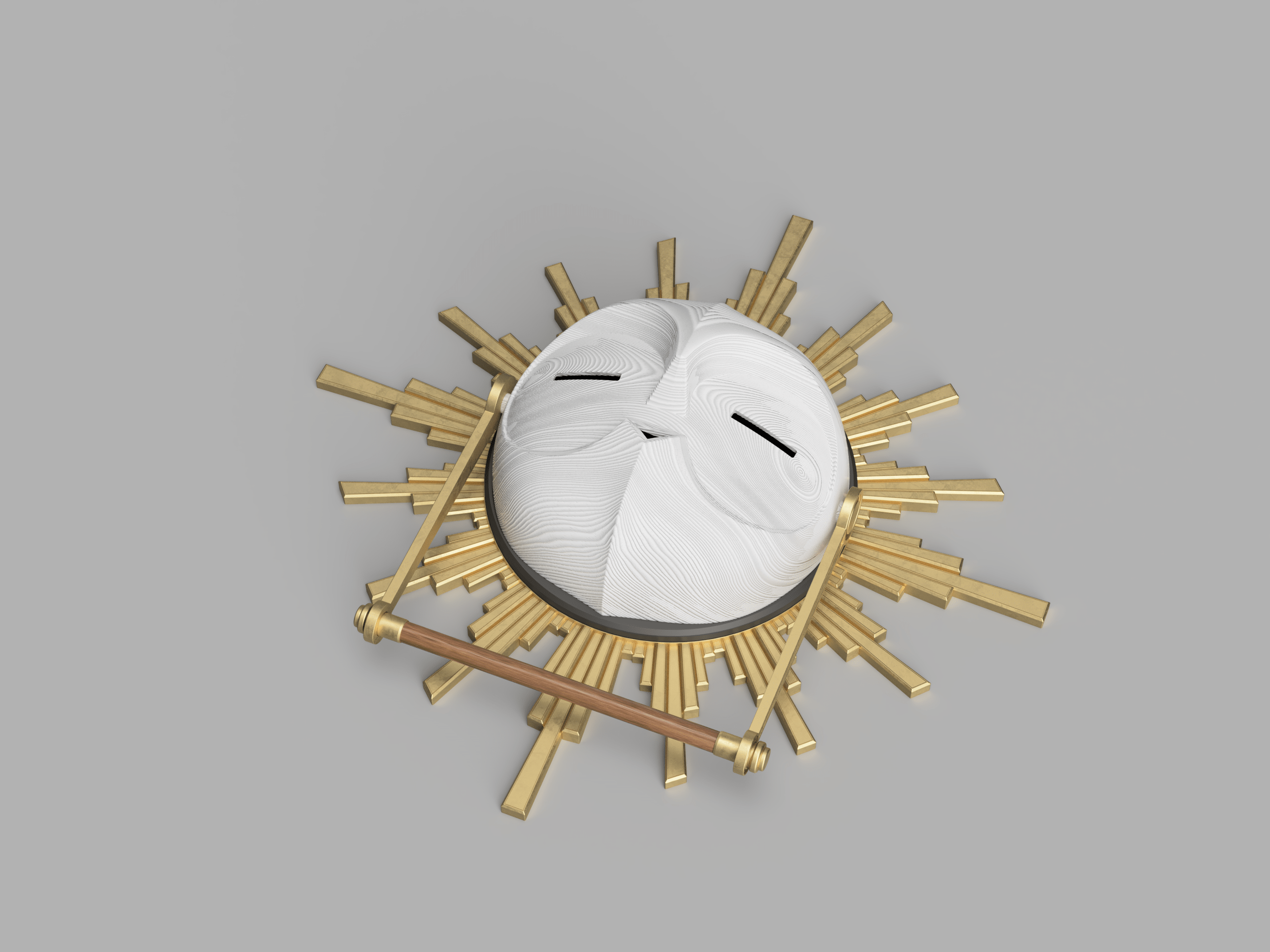 This is more or less meant to be a wall hanging/decorative piece, but you can rescale it for cosplay use if you want. The frames and face print separately, and it includes both a wood-textured and untextured version of the face.