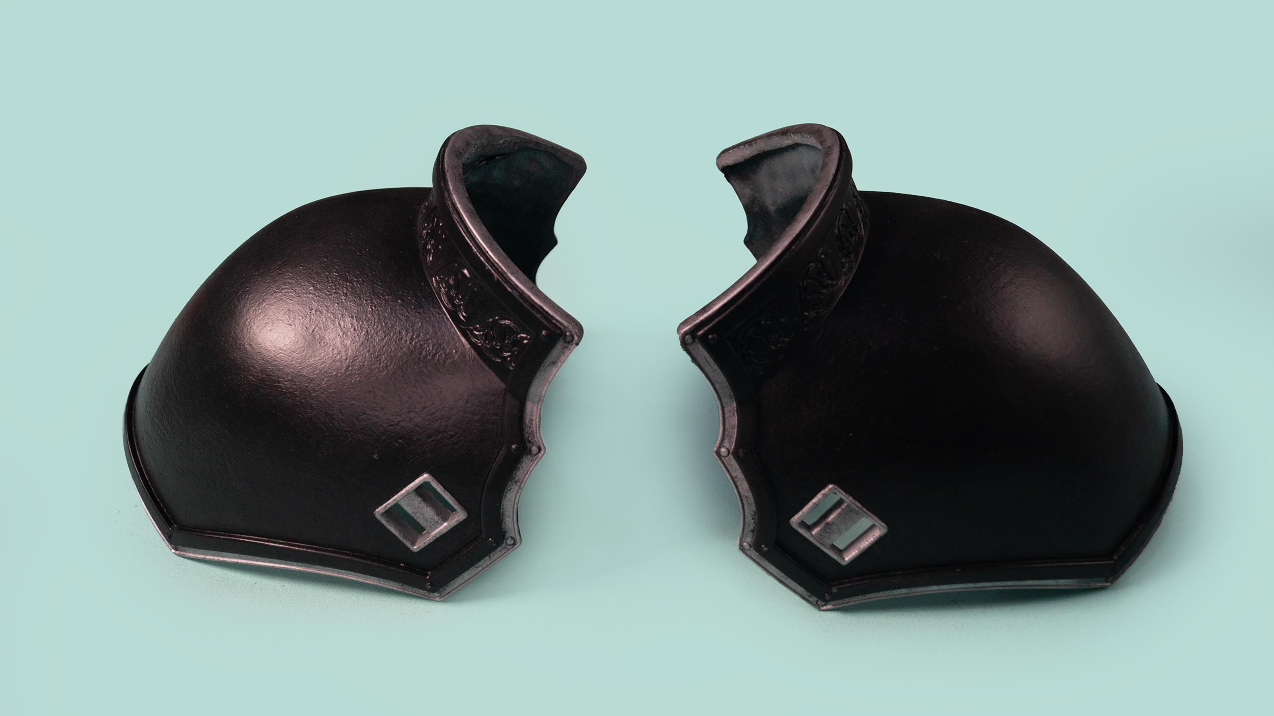 A resin cast, cosplay kit for Zack Fair's pauldrons from FF7 Remake. Comes with resin-printed notches for the slots. Main part of the pauldron has a slight pebbled texture. Kit comes as a set of 2 pauldrons.