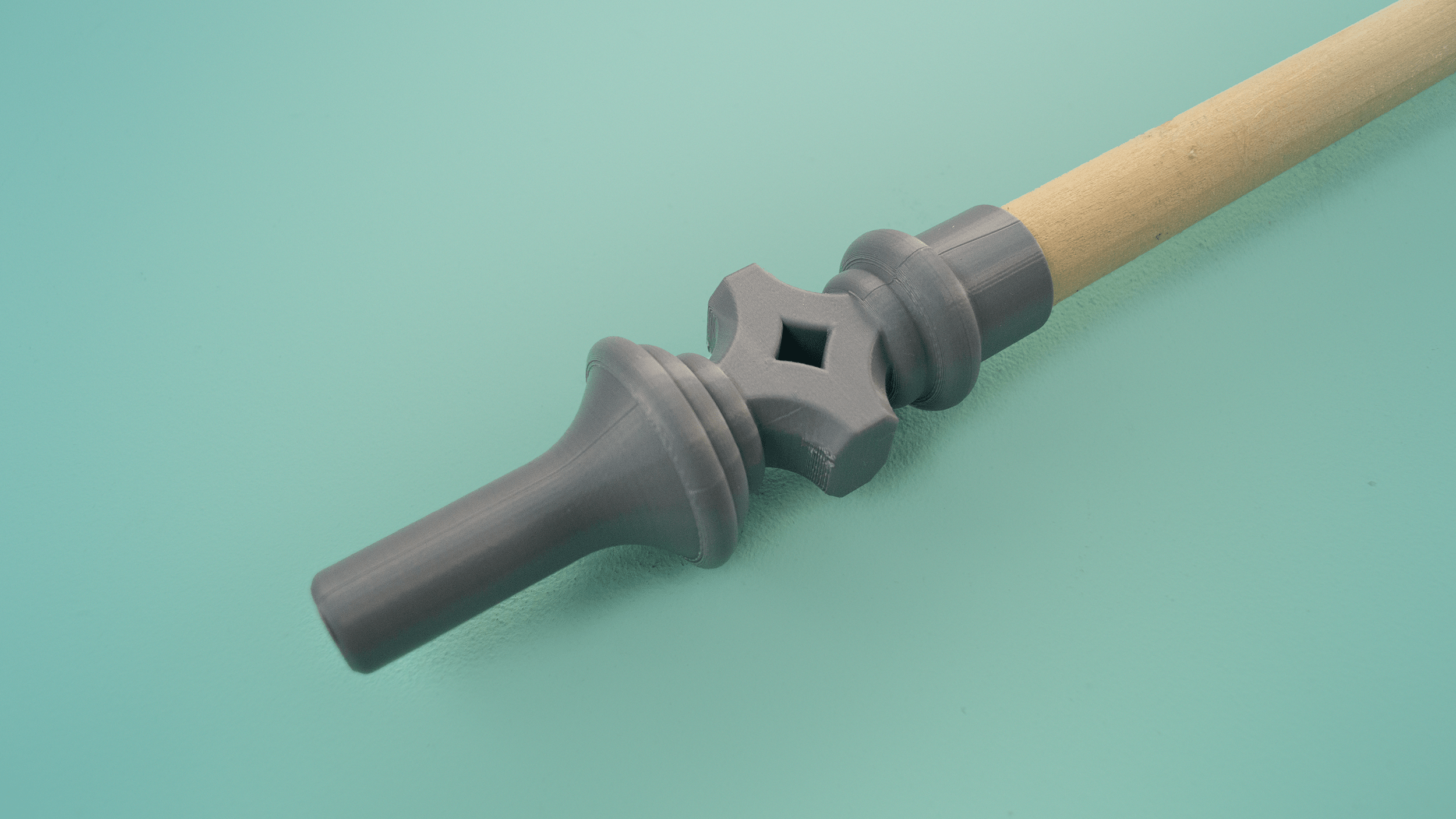 Assembles on a 3/4" dowel, cut 53" long, but can be altered by adjusting the length of the handle.