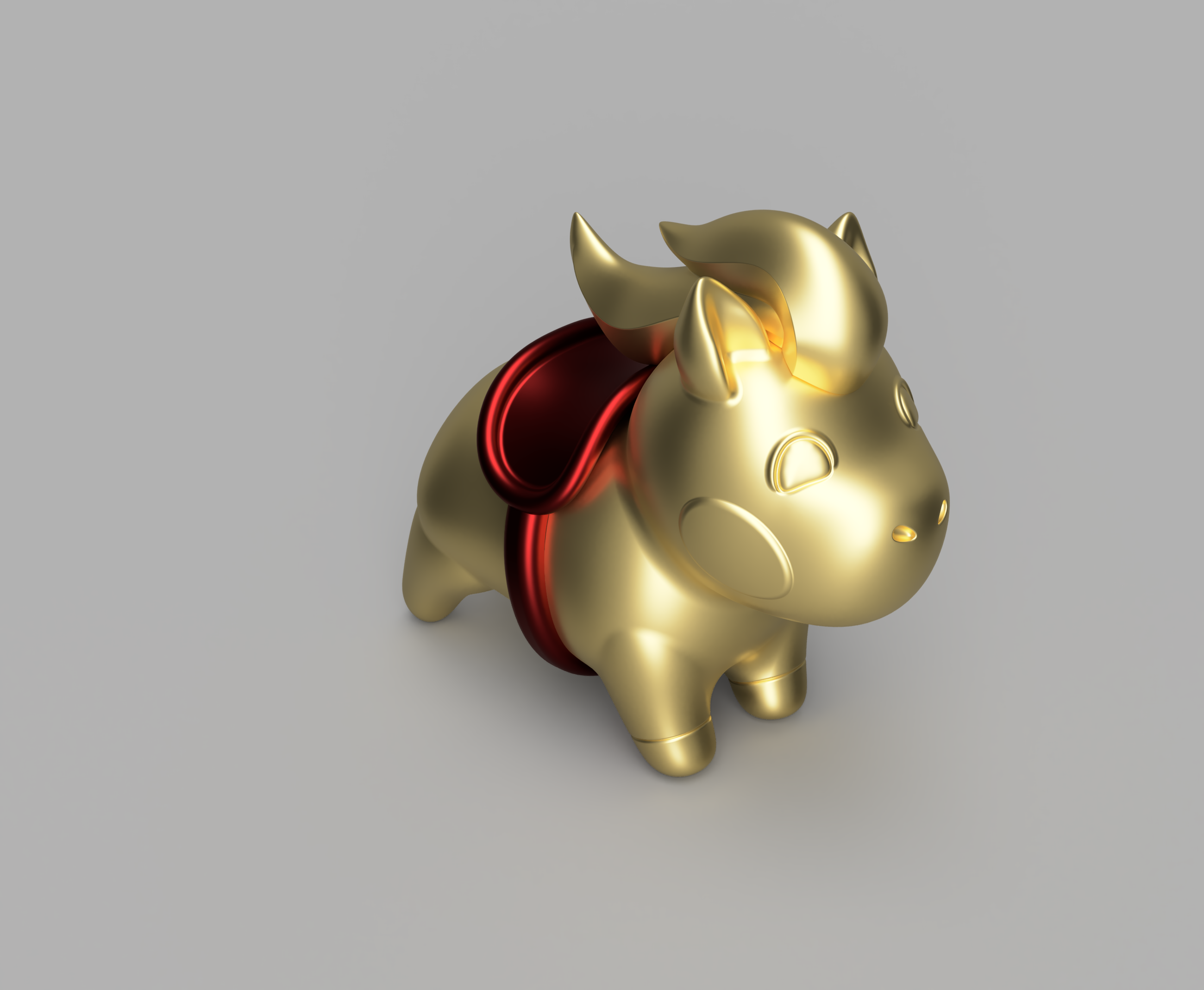 The ponies are hollow to keep them lightweight, with a hole in the bum for a streamer, and a slot between the front two legs to go on a 4mm wire. The saddle hides a seam, so they print front and back, with the mane also separate to reduce supports.