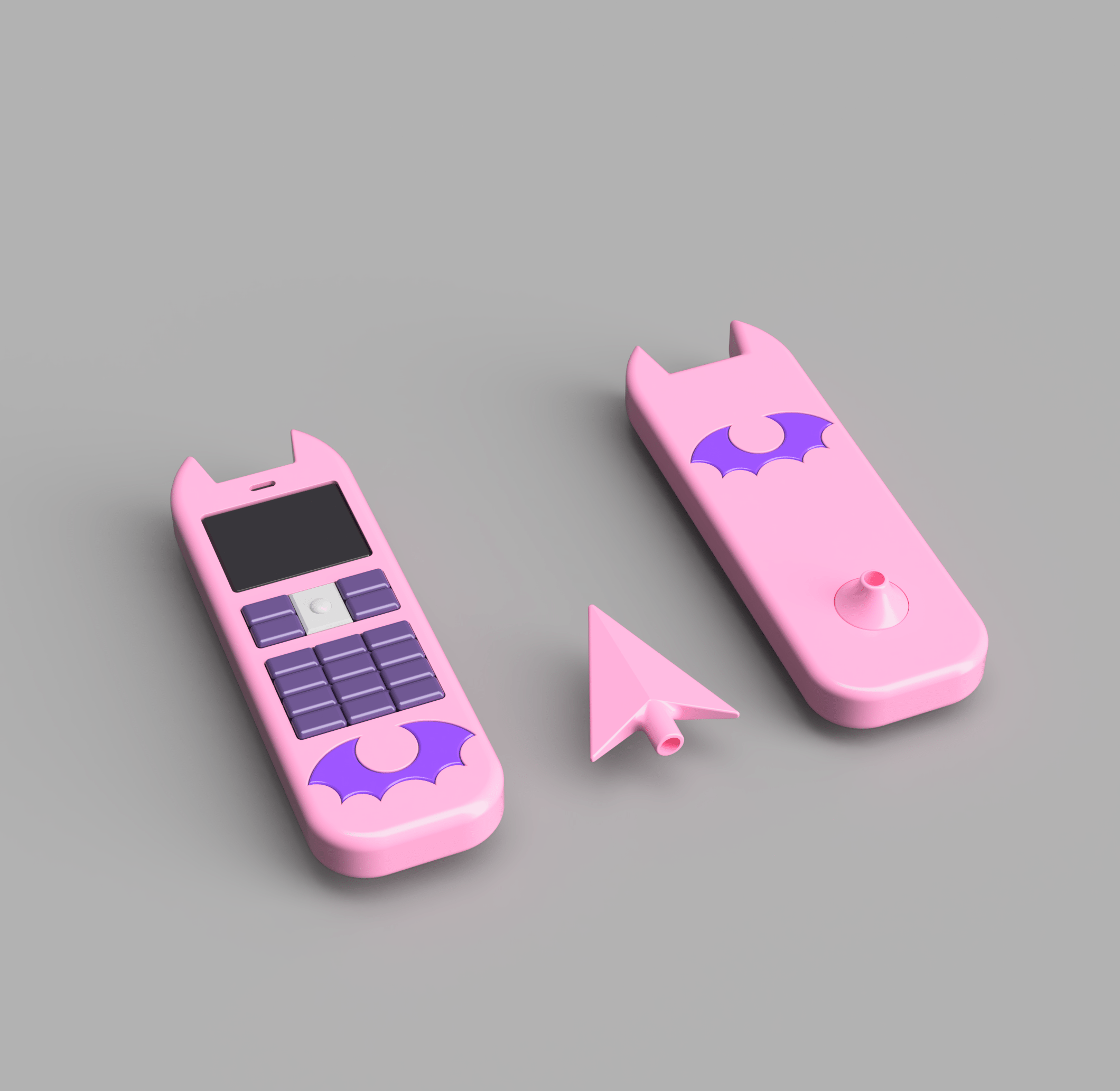.stl format. Finishes about 2.5" wide, and is very long and cartoony. All of the buttons and screens and bits slot out for easy painting before assembly.
