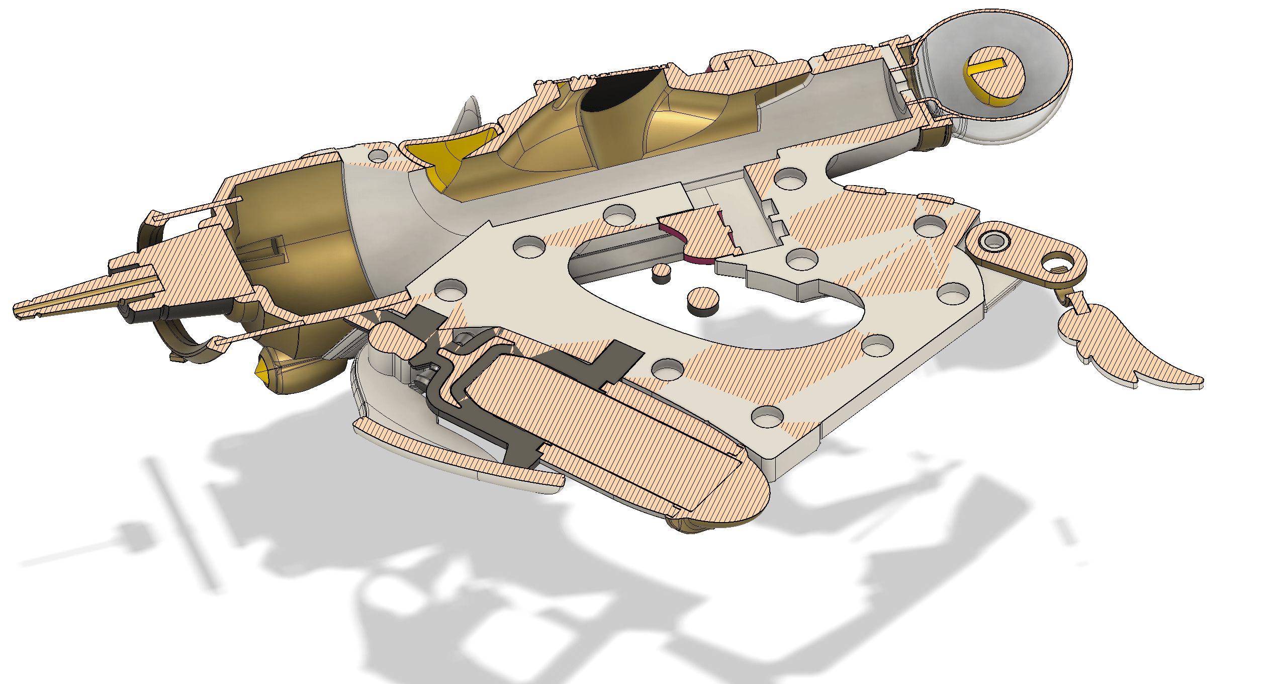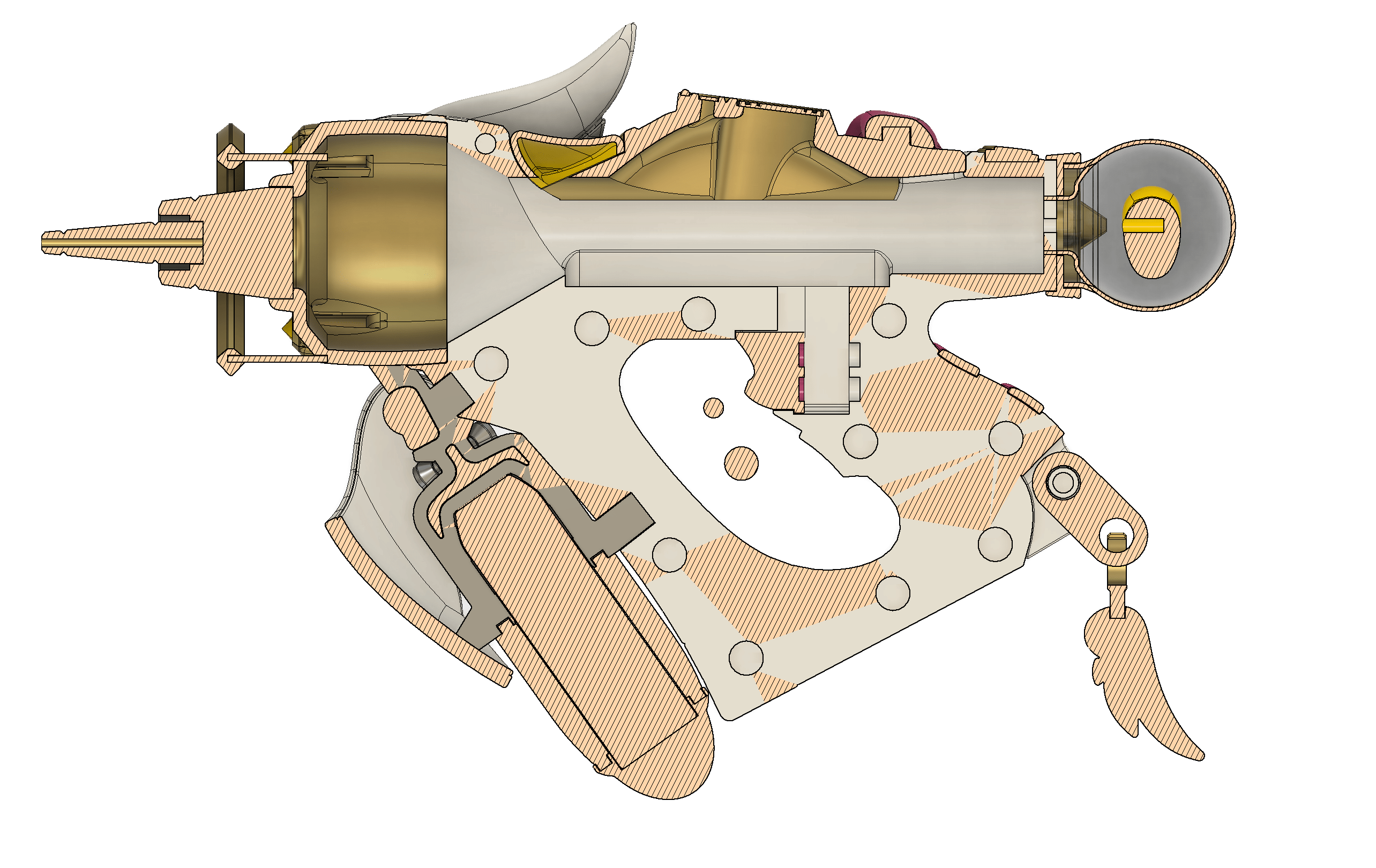 - Trigger slides down into the main body after assembly and can be either glued in place or you can put springs behind it so it moves