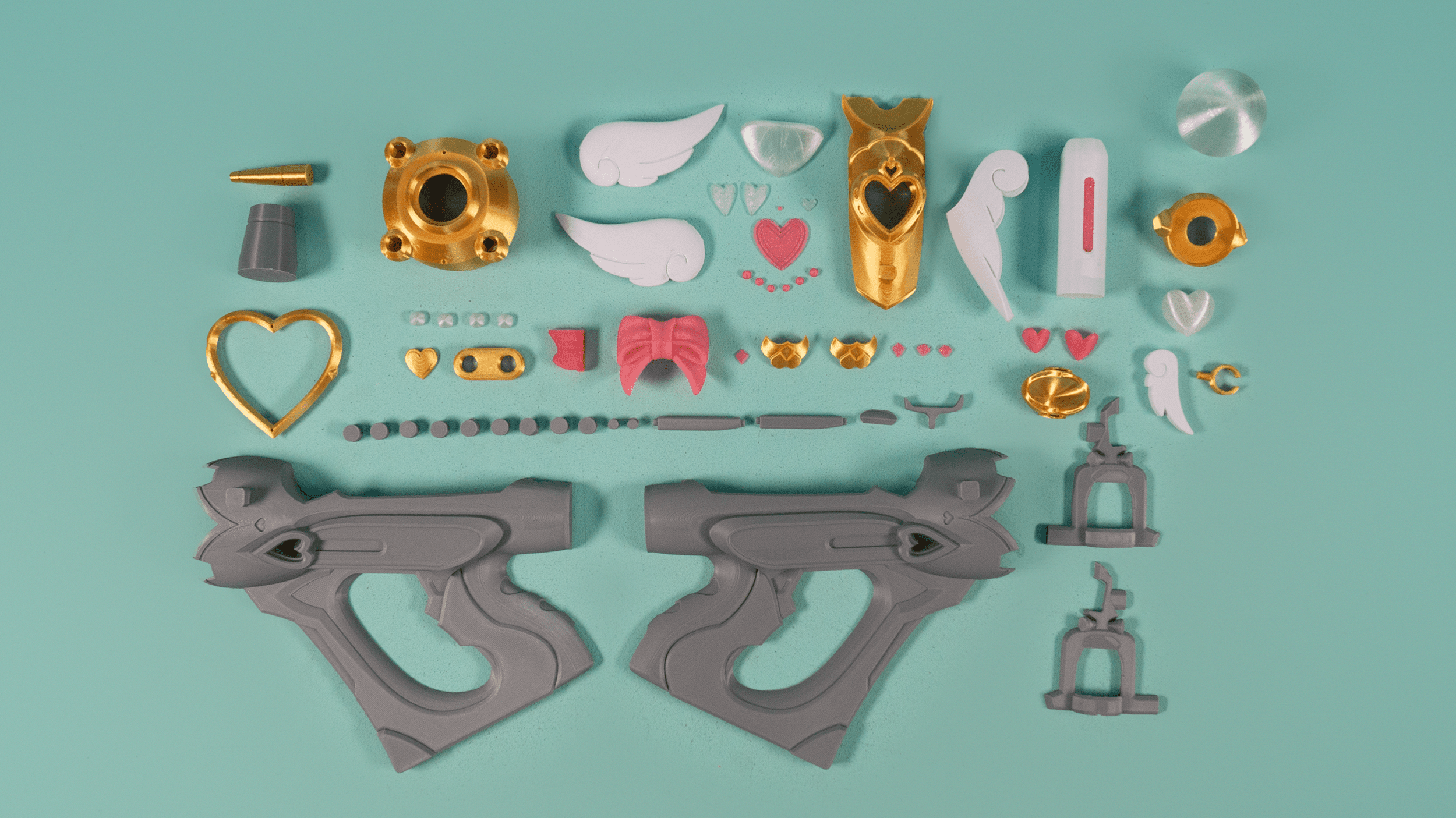A 3D printed cosplay kit for Juno's Dokiwatch Mediblaster from Overwatch. This has a bunch of very small pieces!! It has 47 unique parts plus some duplicates. Photos are of a demo build. We do not print regular kits in the specific colours!