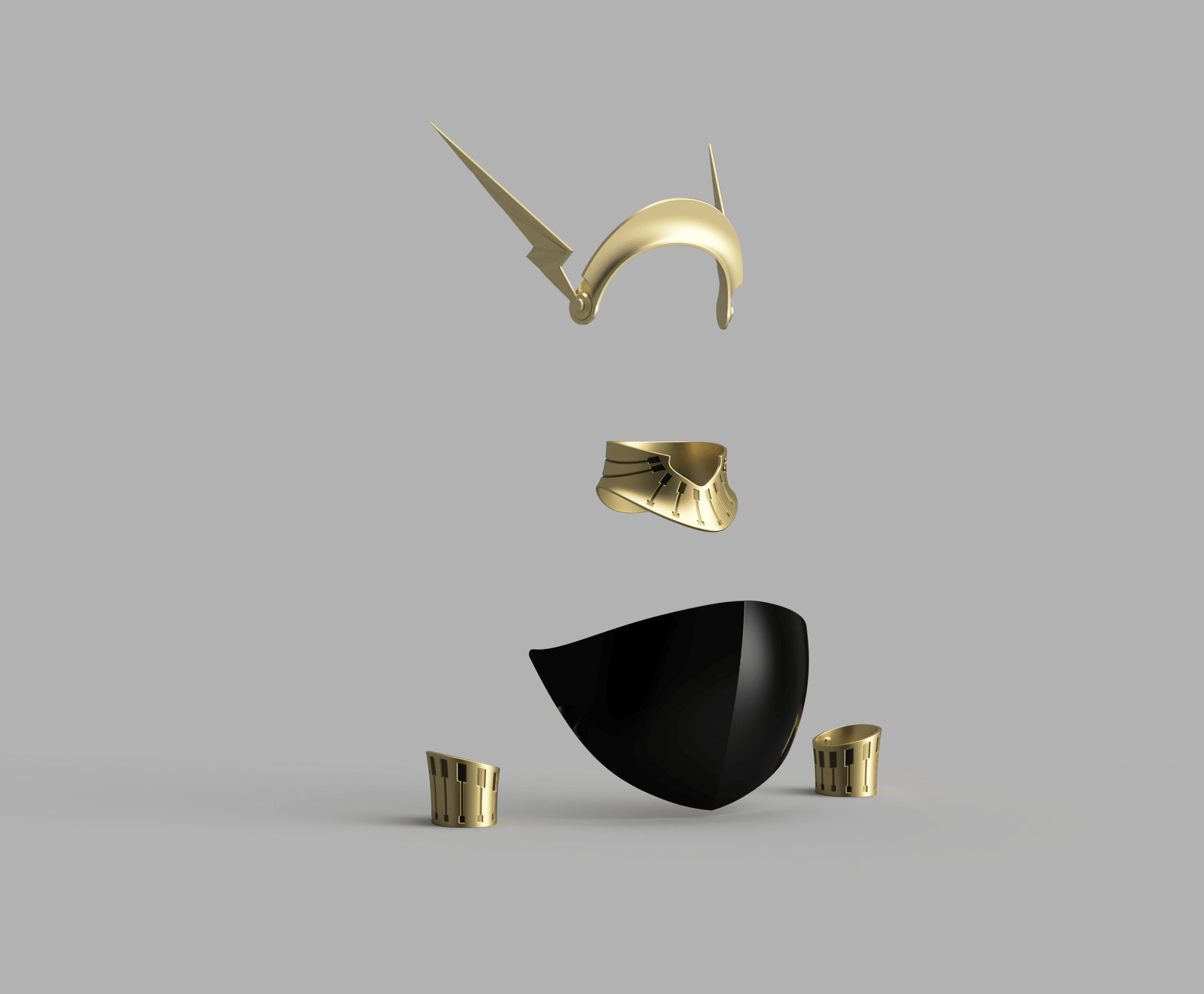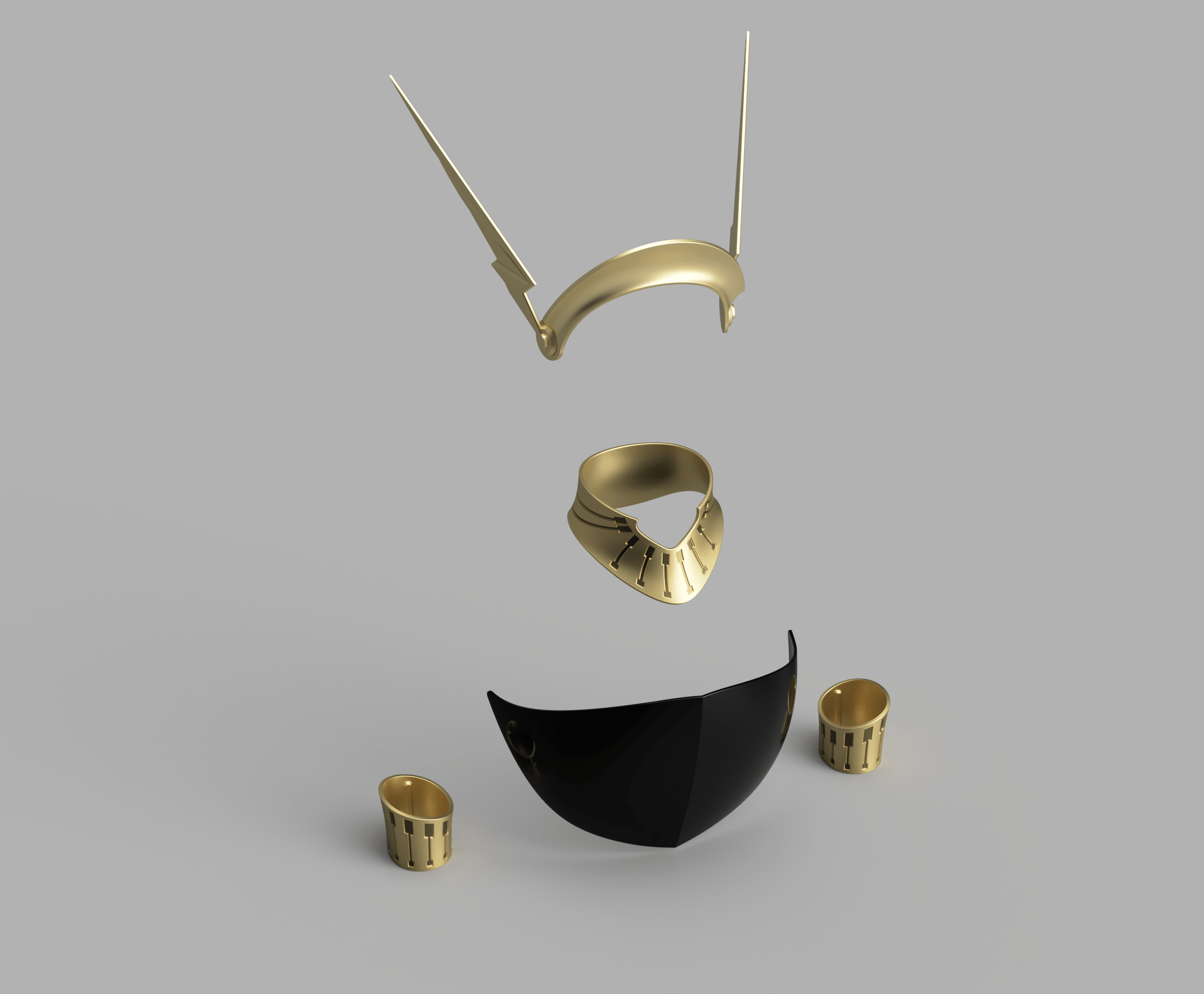 .stl format. Tiara, bracelets, and collar, with a bonus crumb catcher and backplate for the wings! All sliced for a 250mm printer, but almost everything will fit much smaller, as it all prints in parts.