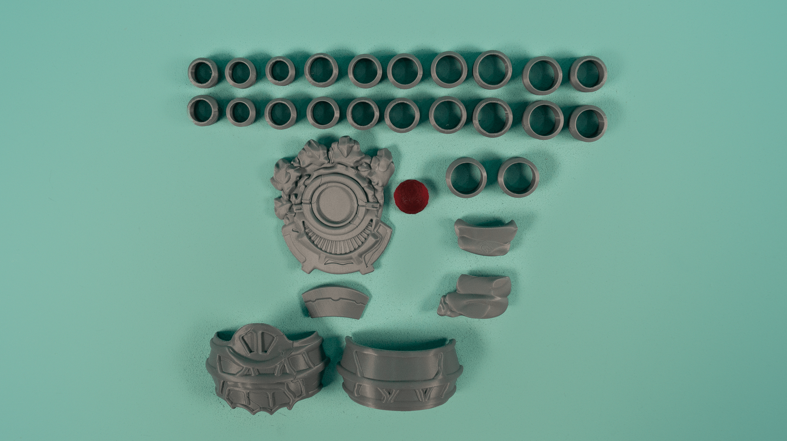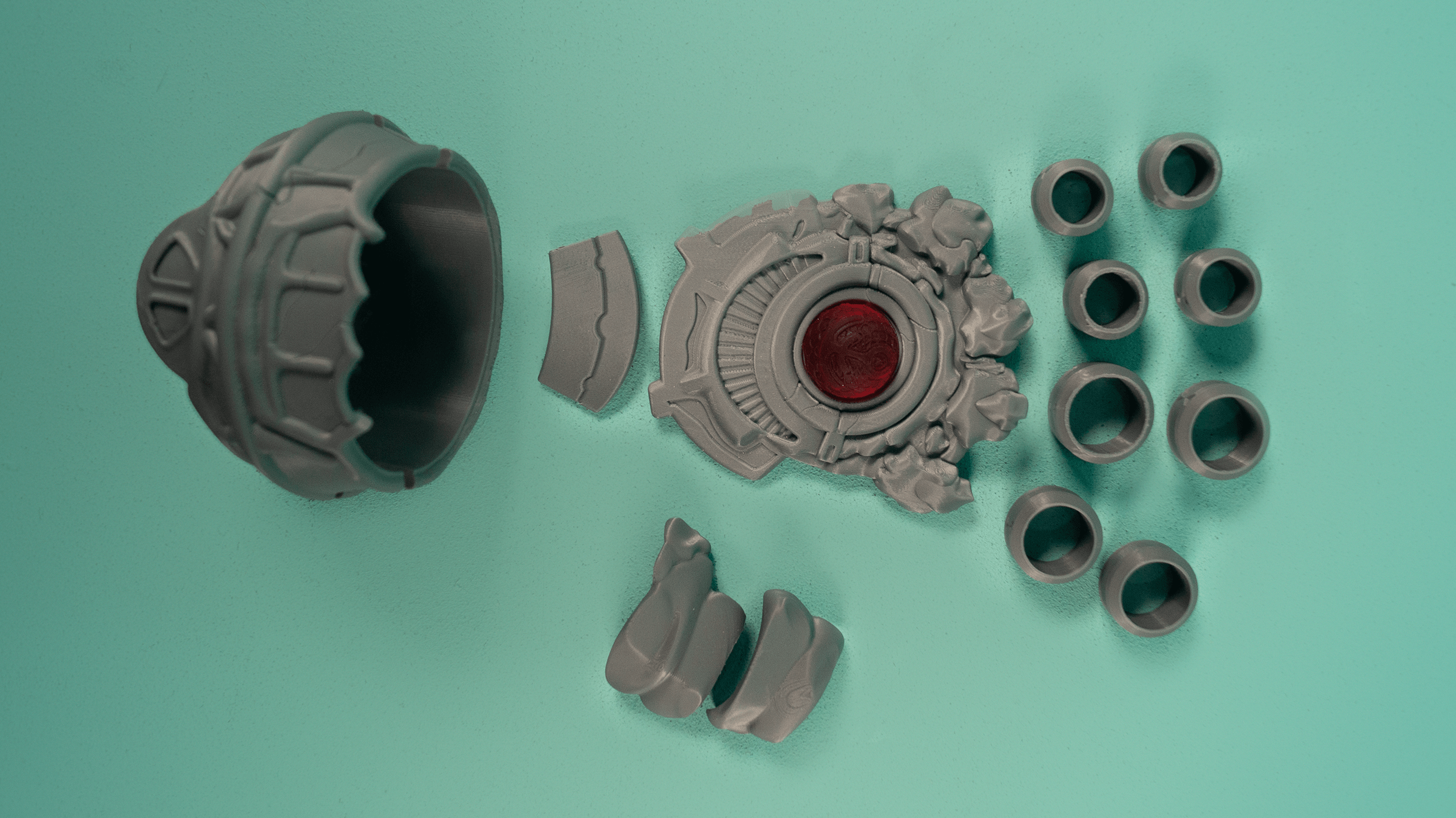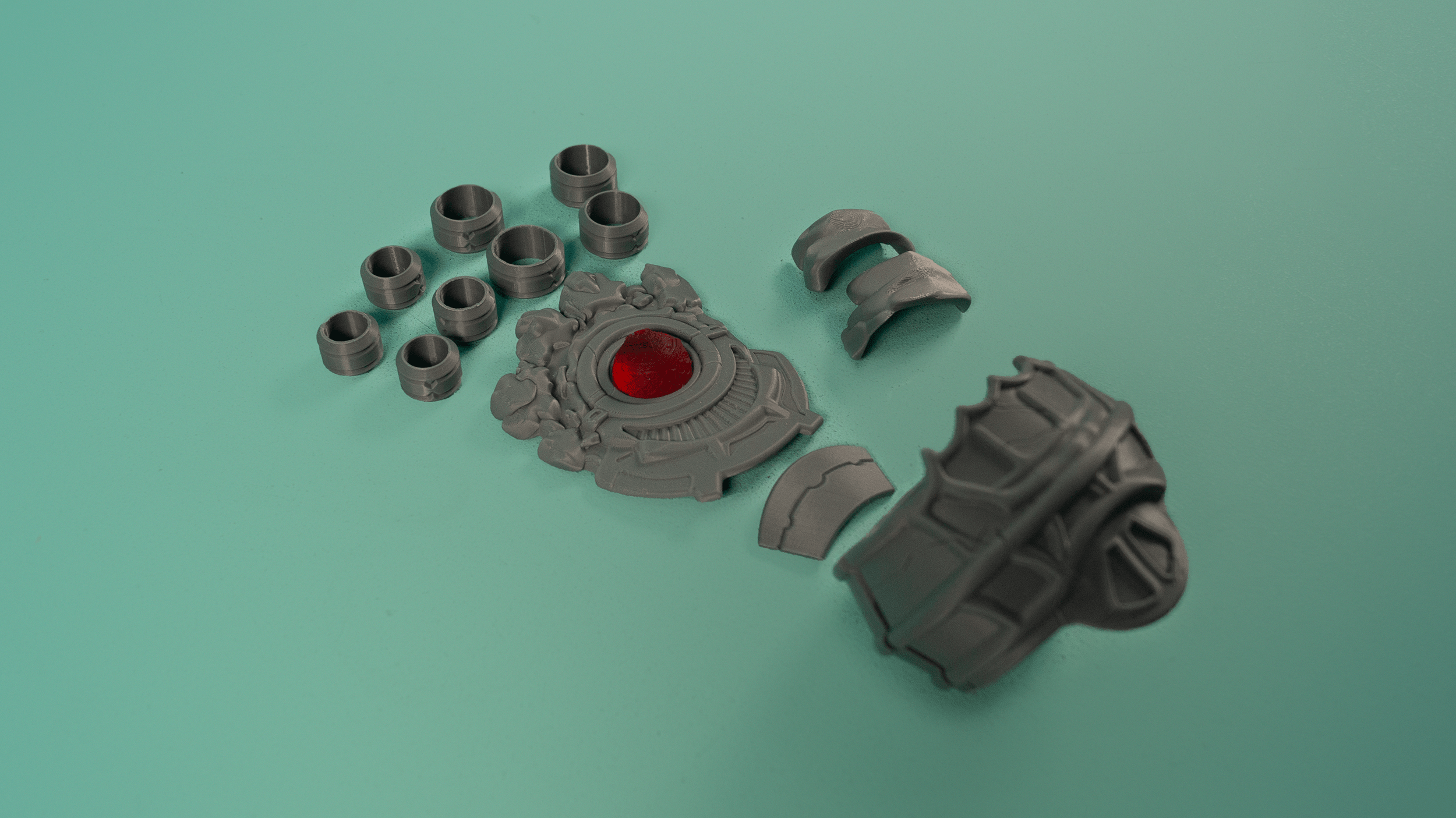 A 3D printed kit for Yuri's Fetters of Dromi Hero Relic from Three Houses. Bracelet snaps together on printed pegs. Please provide ring sizes for all fingers in the notes upon ordering!