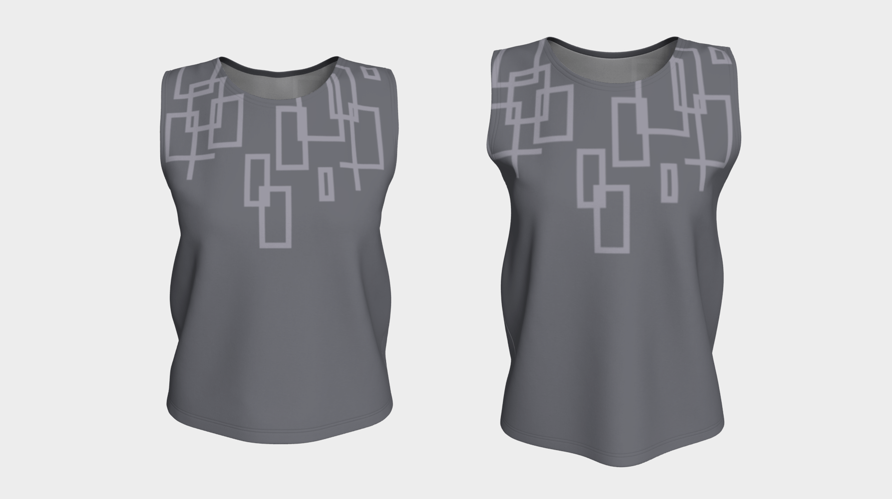 Prompto's tank top from Dissidia Duellum, ready to wear. Available in five standardized sizes, in either a regular or long length (see chart in images.) Print is mirrored on both front and back of garment.