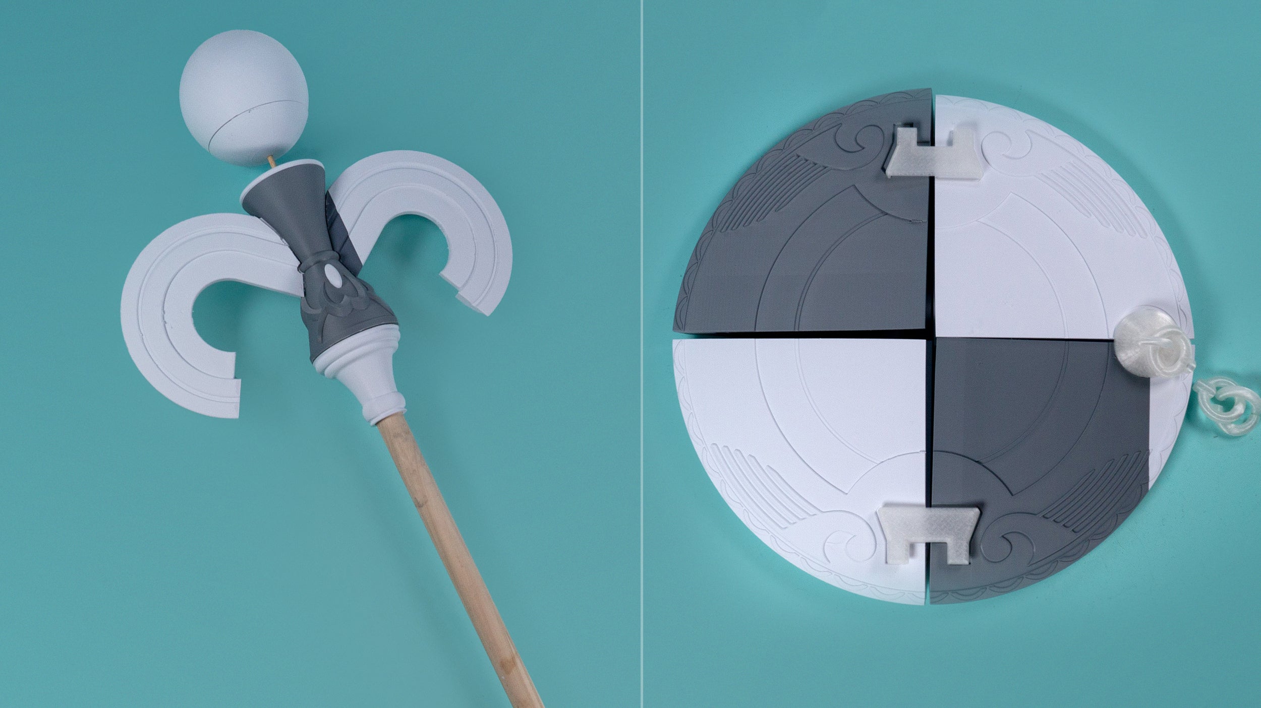A 3D Printed Kit for Palutena's staff and Shield. Bundle grab one or the other, or bundle them for a little deal.