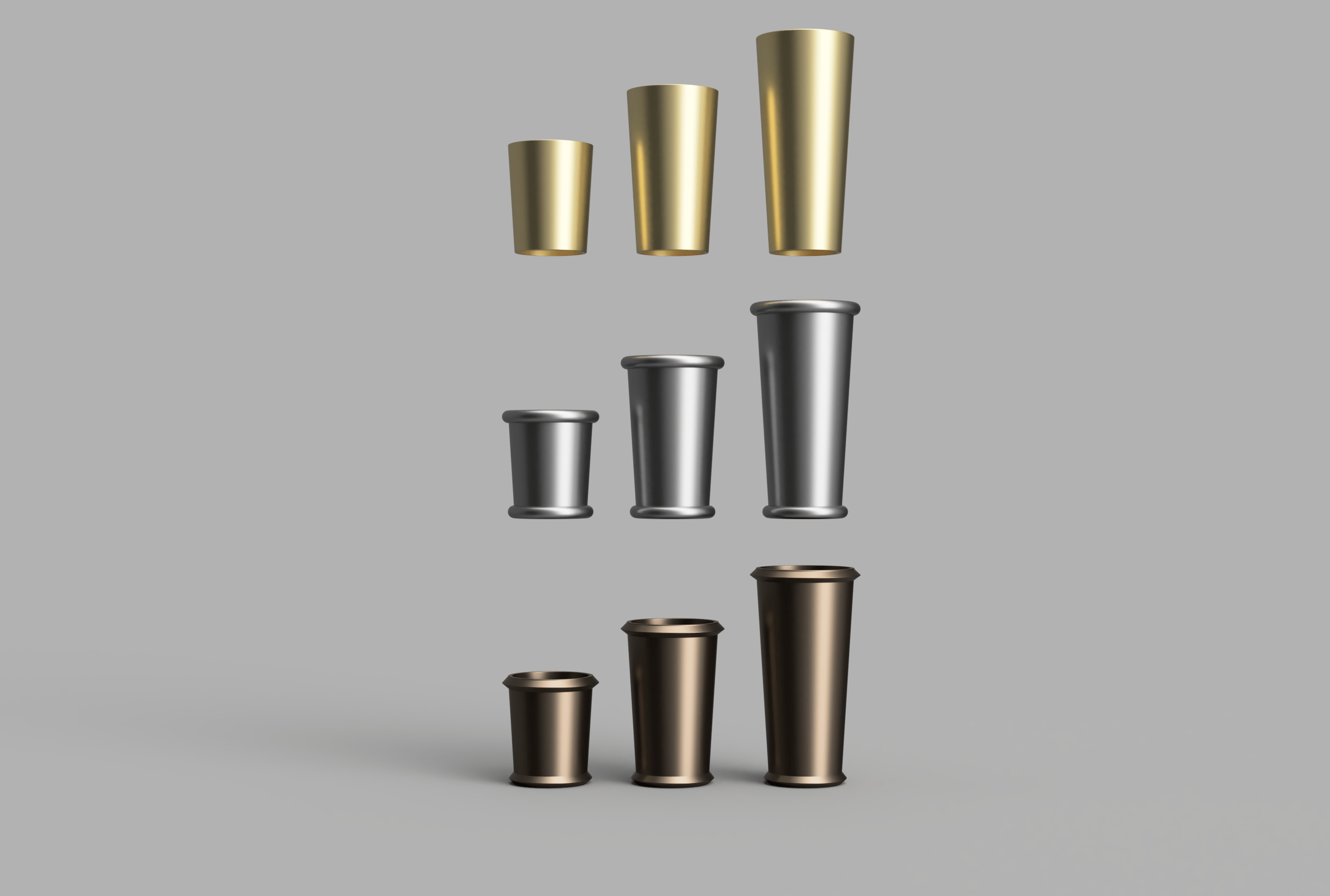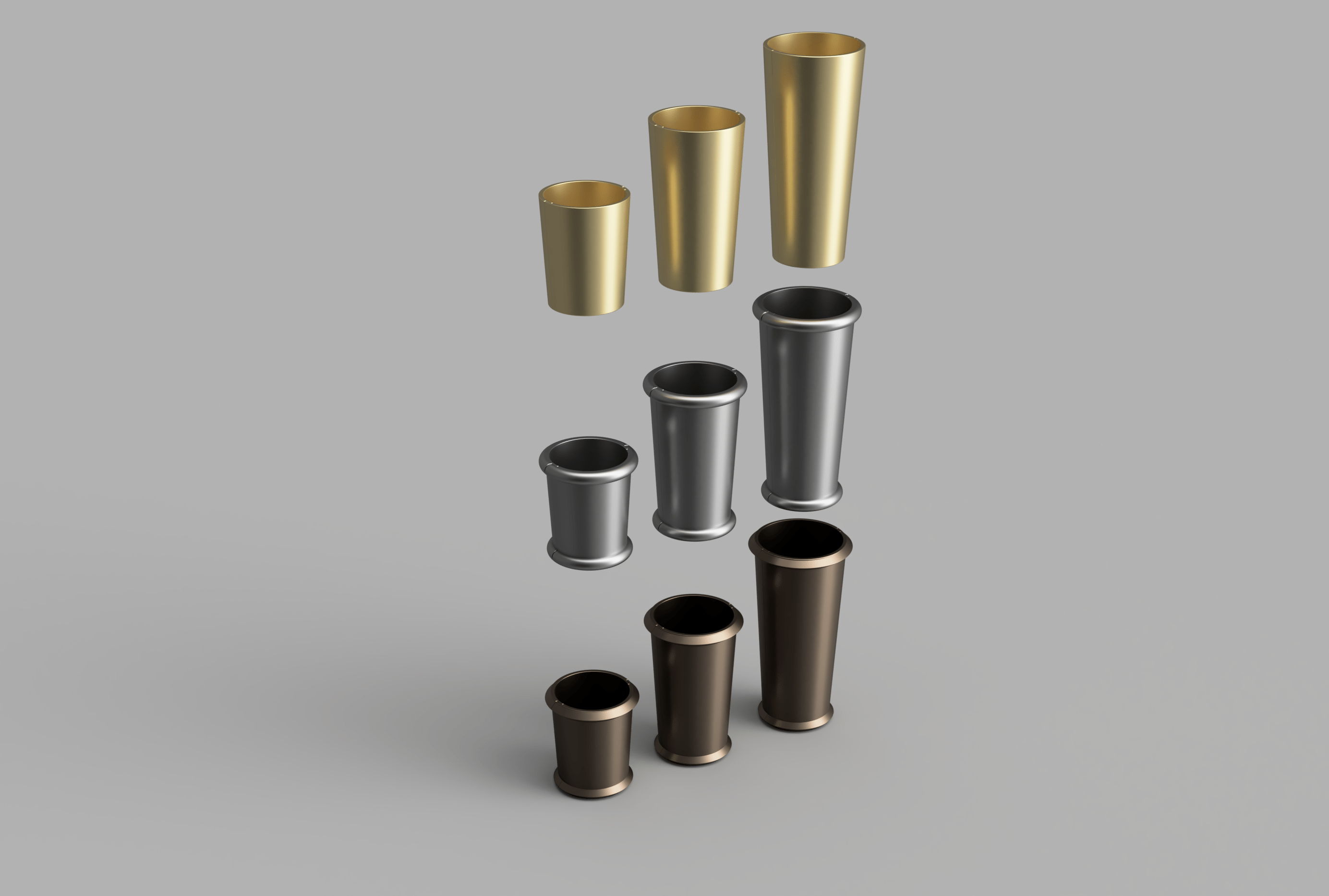 .stl format. Three different styles of gauntlet –– plain, piped and beveled. They come in three sizes (6", 7" and 8" wrists) and three different heights (4", 6" and 8")