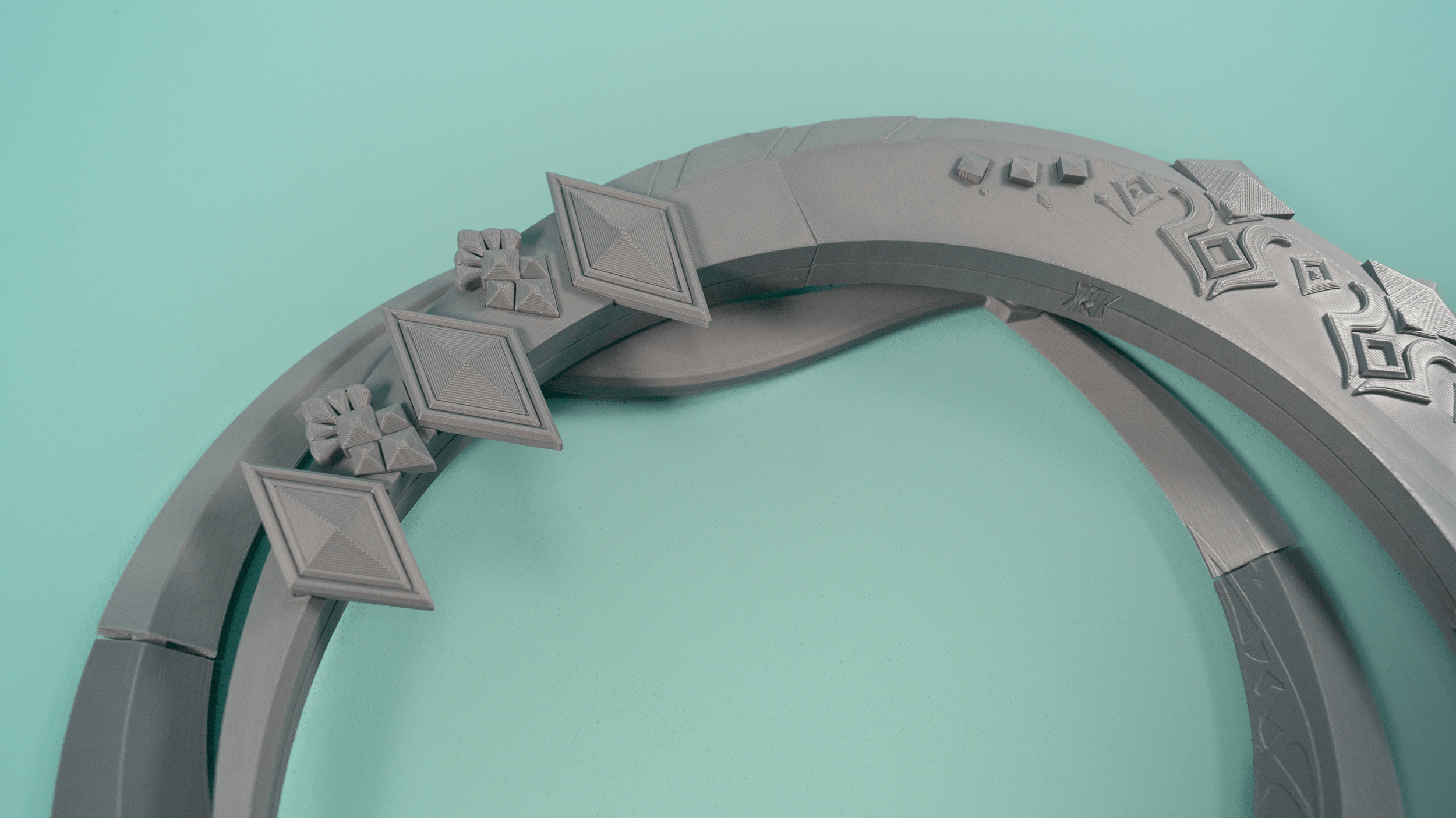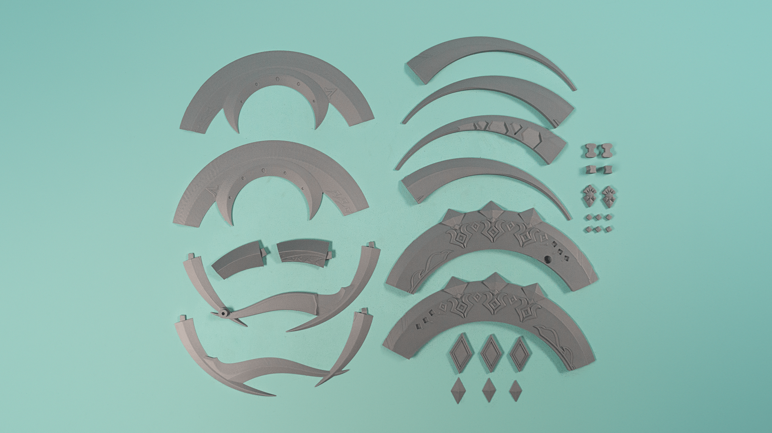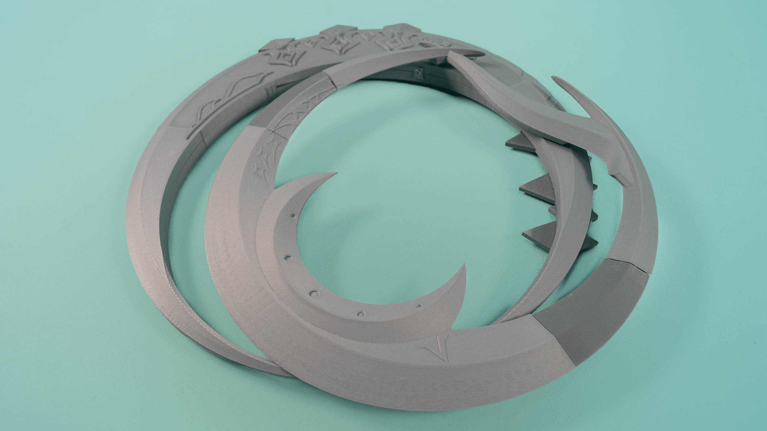 A 3D printed cosplay kit of The Enchufla Dancer Chakram - Dancer Arms. Model by Cole Nielsen (@_craftcentric)