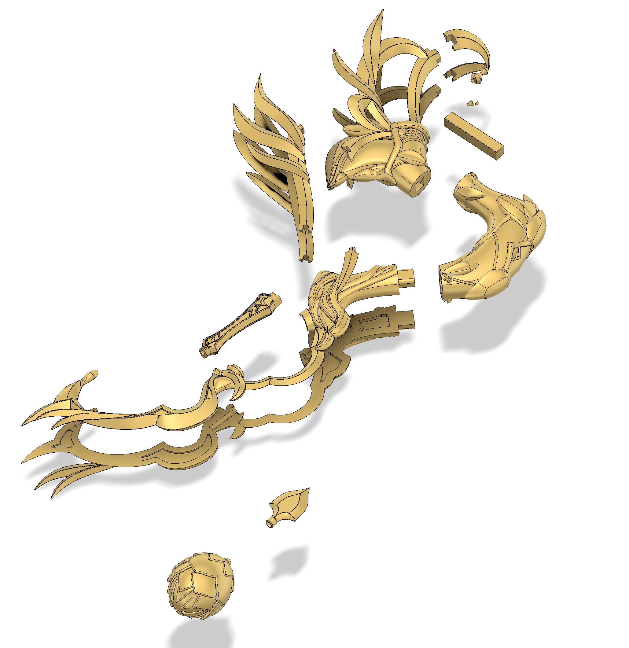 .stl format. Finishes around 32" from top to bottom; as bows go it's quite small, but it's got a LOT of presence!