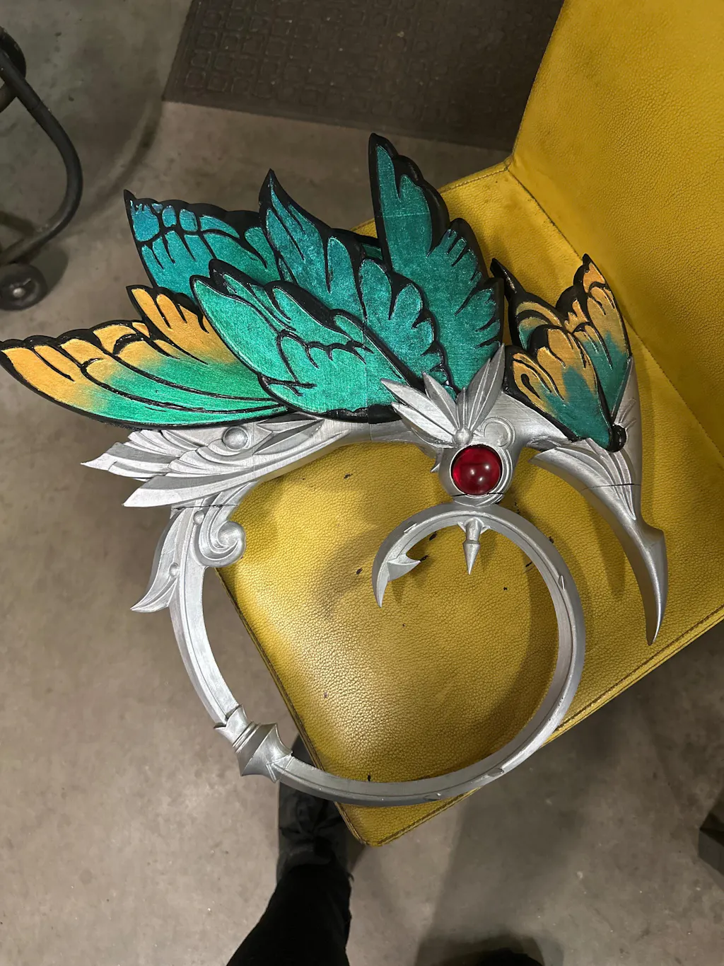 A 3D printed kit of The King's Tathlums Chakrams for a FFXIV Dancer cosplay. Assembles on keys with no dowels required.